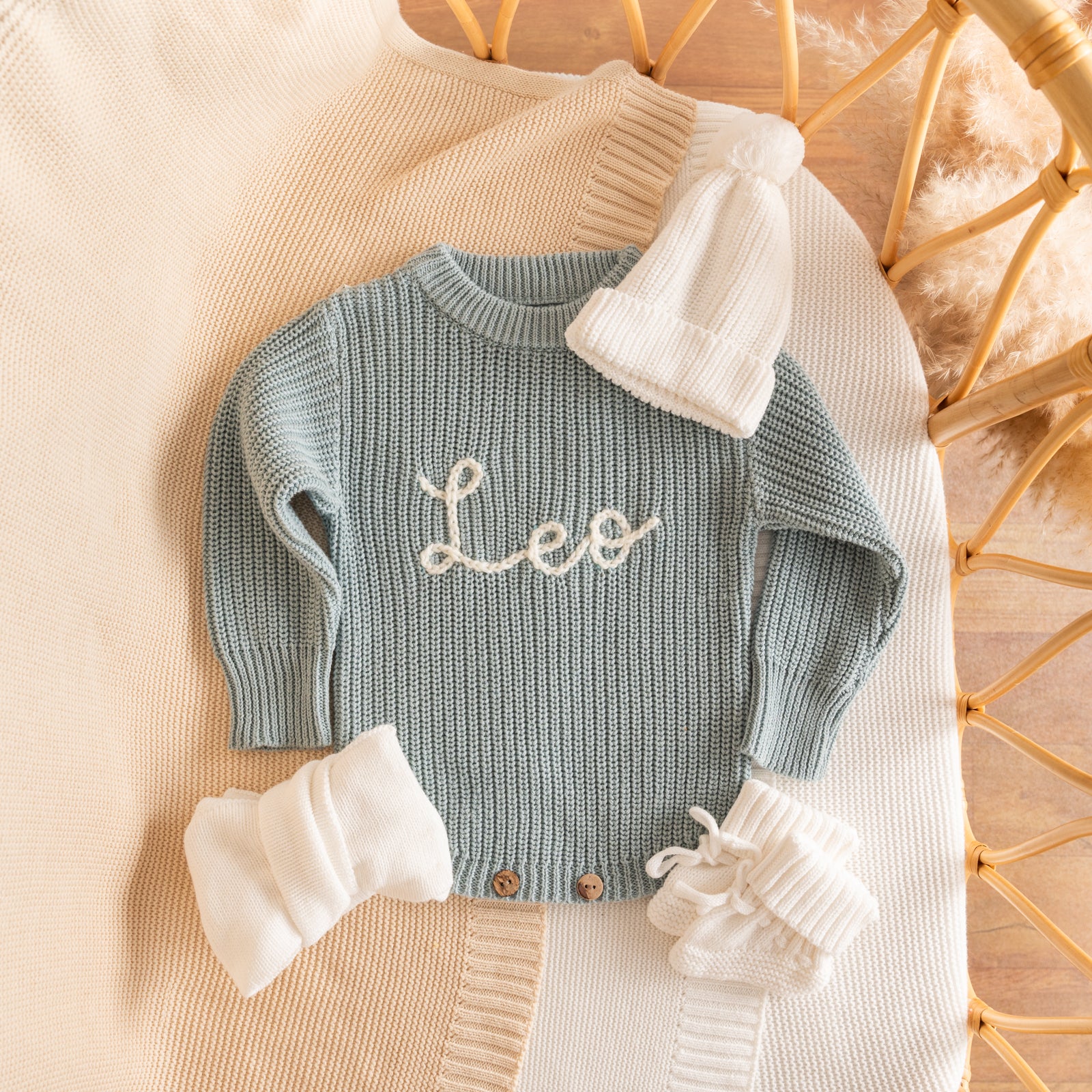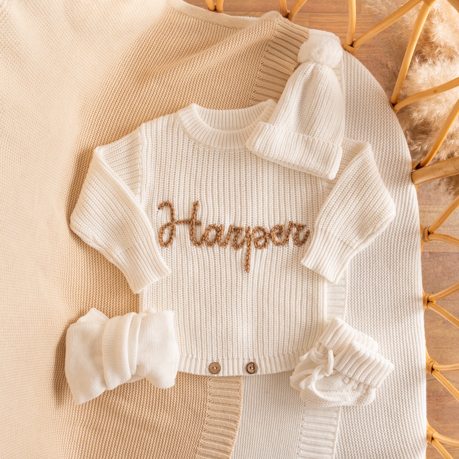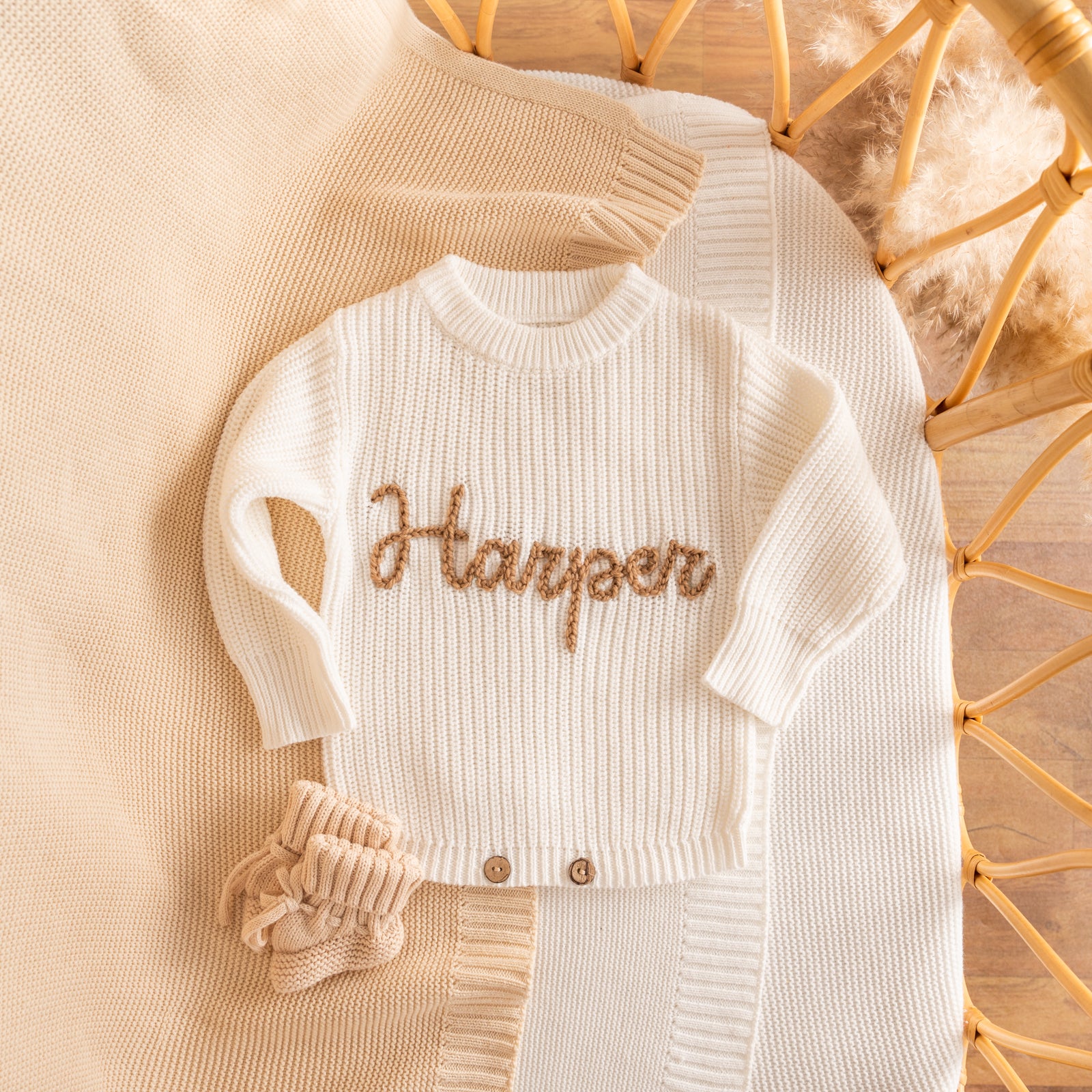 Chunky Knit Hand-Embroidered Custom Name Romper