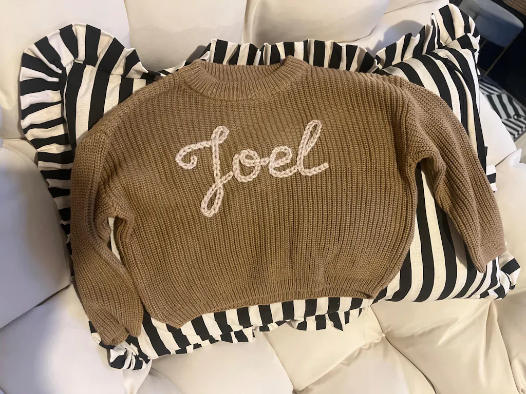 Made of 100% Cotton, this sweater is warm and gentle on baby's skin.