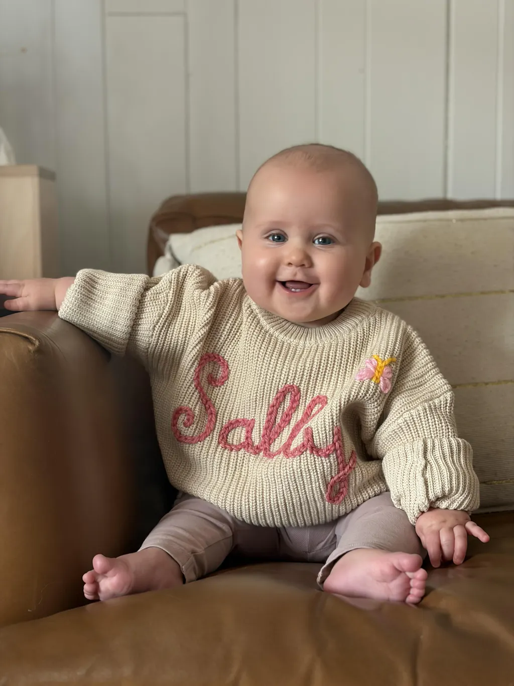 Made of 100% Cotton, this sweater is warm and gentle on baby's skin.